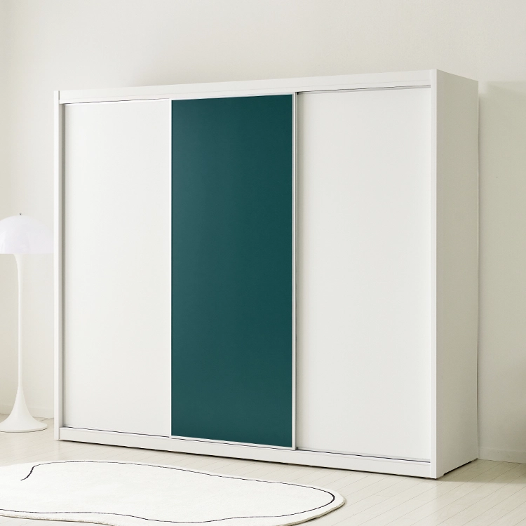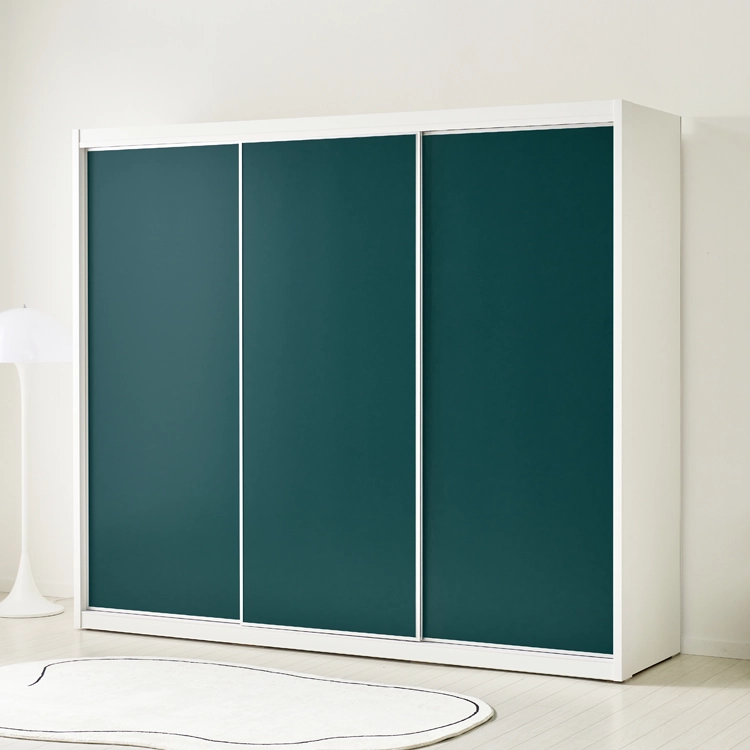 딥그린 슬라이딩옷장 3통 옷봉장+이불장+선반장 246cm