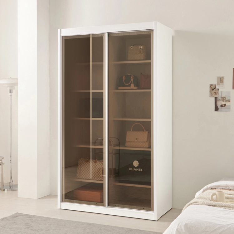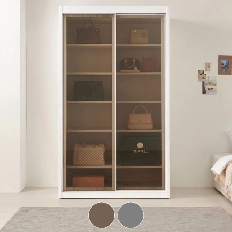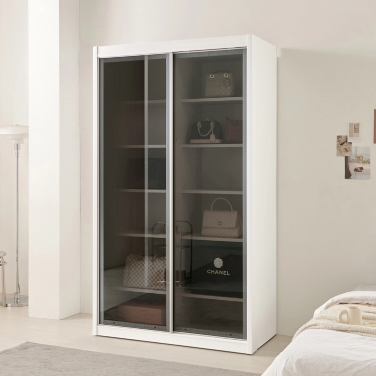 슬라이딩쿠페 클리어 E0 옷장 이불장+선반장 122cm (2color)